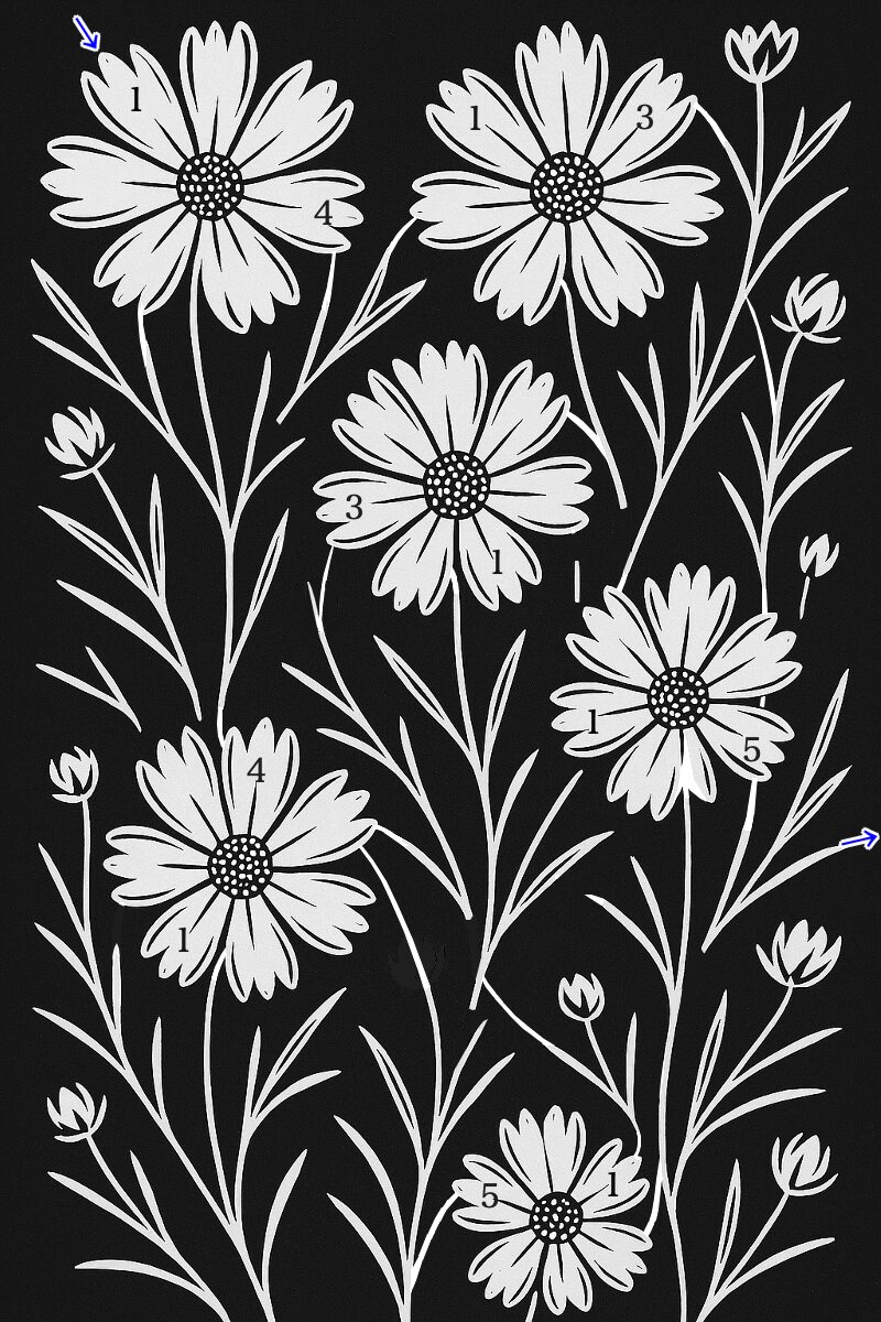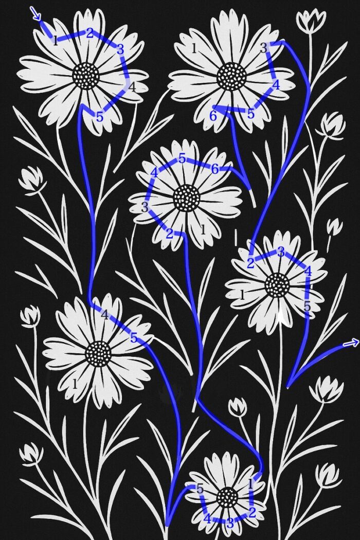 As my eyes grew accustomed to its swift movements, I finally noticed a subtle change. On some of the petals near where the bee had touched, faint numbers had appeared. What’s more, there seemed to be a consistent rule linking the order of its path to the numbers themselves.